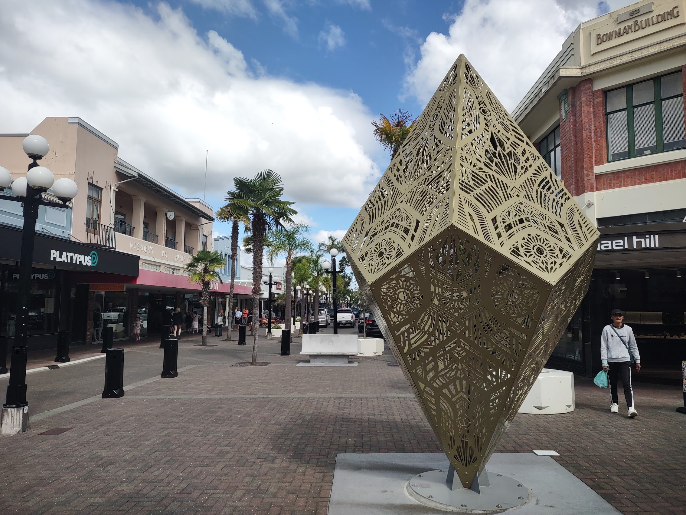 Rotorua turned out to be yet another cool New Zealand town (though too big to be a “Cool Little Town”) with some beautiful old buildings, street art, sculptures and, of course, lots of interesting shops. We were particularly enamored by a place called the Mountain Jade Store which specialized in greenstone jewelry.