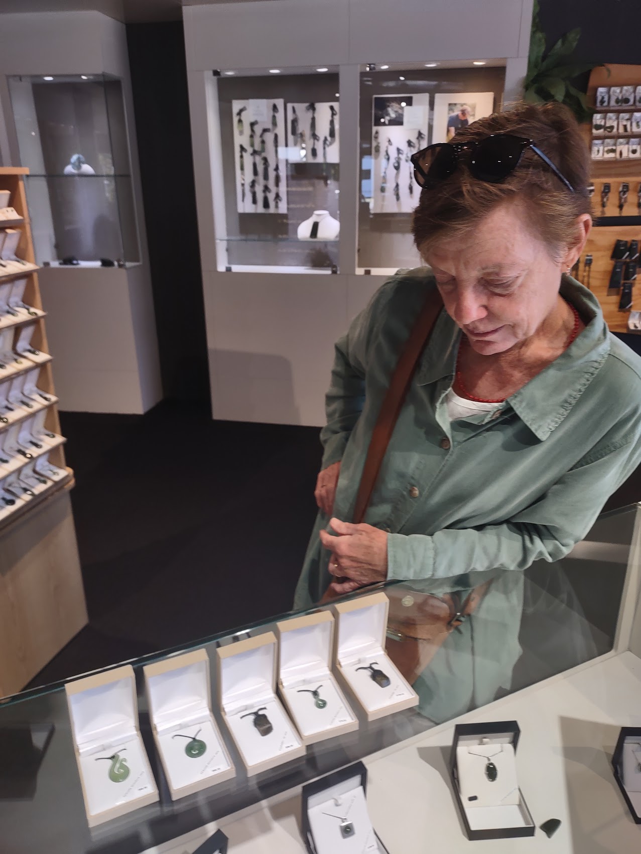 After spending quite some time looking at everything in the Mountain Jade showroom, we decided to purchase pendant necklaces for ourselves and each of our kids as Christmas presents. They were beautiful little pieces, each based on a traditional Māori design which came with an explanation of the symbolism of each as well as information regarding the artist who had created it. (Part of the work of Ngāi Tahu is to promote the work of young artists carrying on the traditions of their ancestors.)