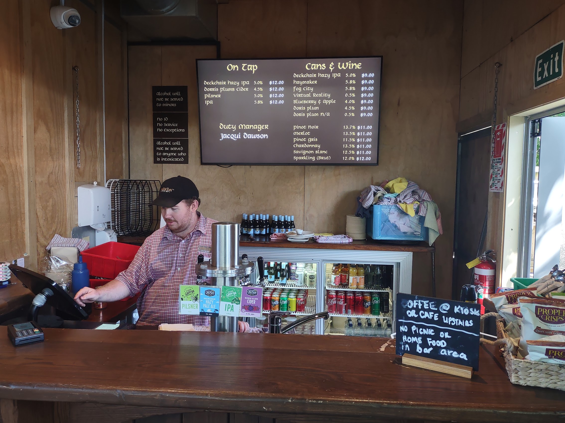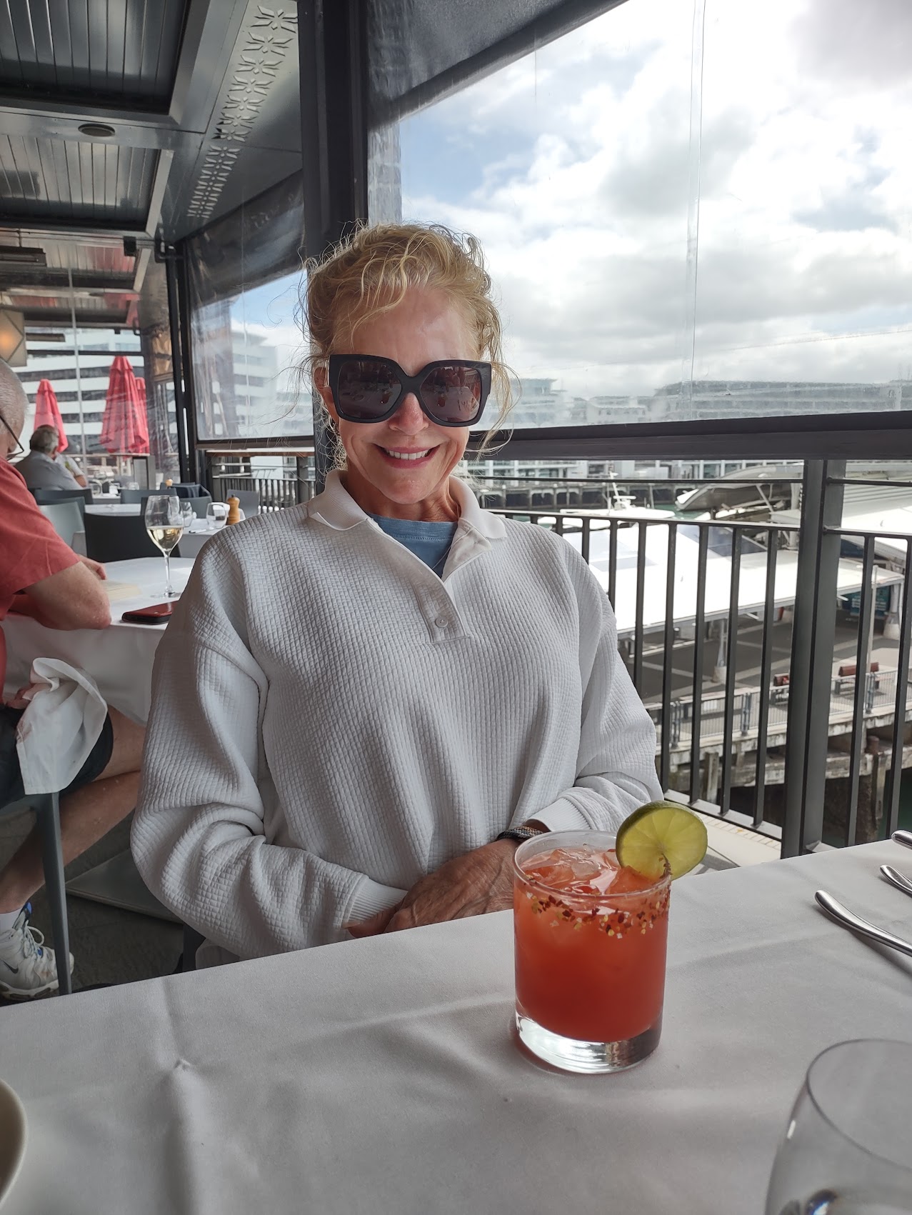 From the harbor, there was a nice view of the city of Auckland skyline with its iconic Sky Tower which always reminds me of the Seattle Space Needle. (Though at almost 1100 feet , Auckland’s Sky Tower would loom over Seattle’s which is only 605 feet tall.) After a couple of hours of wandering the harbor, Colleen and I decided to take a break at a place called Dr. Rudi’s Rooftop Brewing Company, in a building next to our own with the same wonderful views of all the activity in the harbor where Denny and Wendy eventually caught up with us.