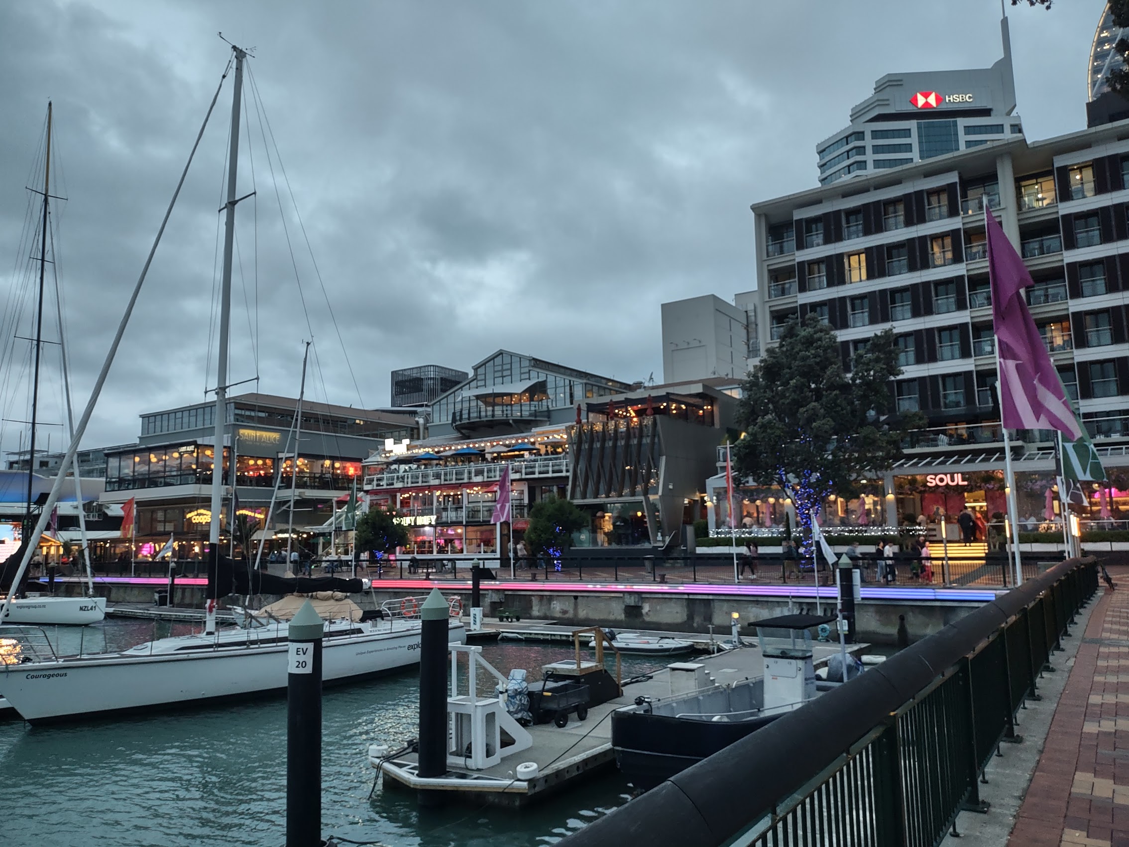 After some delicious and refreshing cocktails at Harbourside, we proceeded to explore the waterfront which proved to be endlessly entertaining. Near the entrance to the harbor was a display featuring the revolutionary “black magic” hull design that helped New Zealand win the America’s Cup in 1995. There were various marinas full of a variety of boats, many of them extraordinarily large and (presumably) extraordinarily expensive. There were also a few drawbridges which occasionally went up to the larger boats to enter the marina. Actually very entertaining to watch.